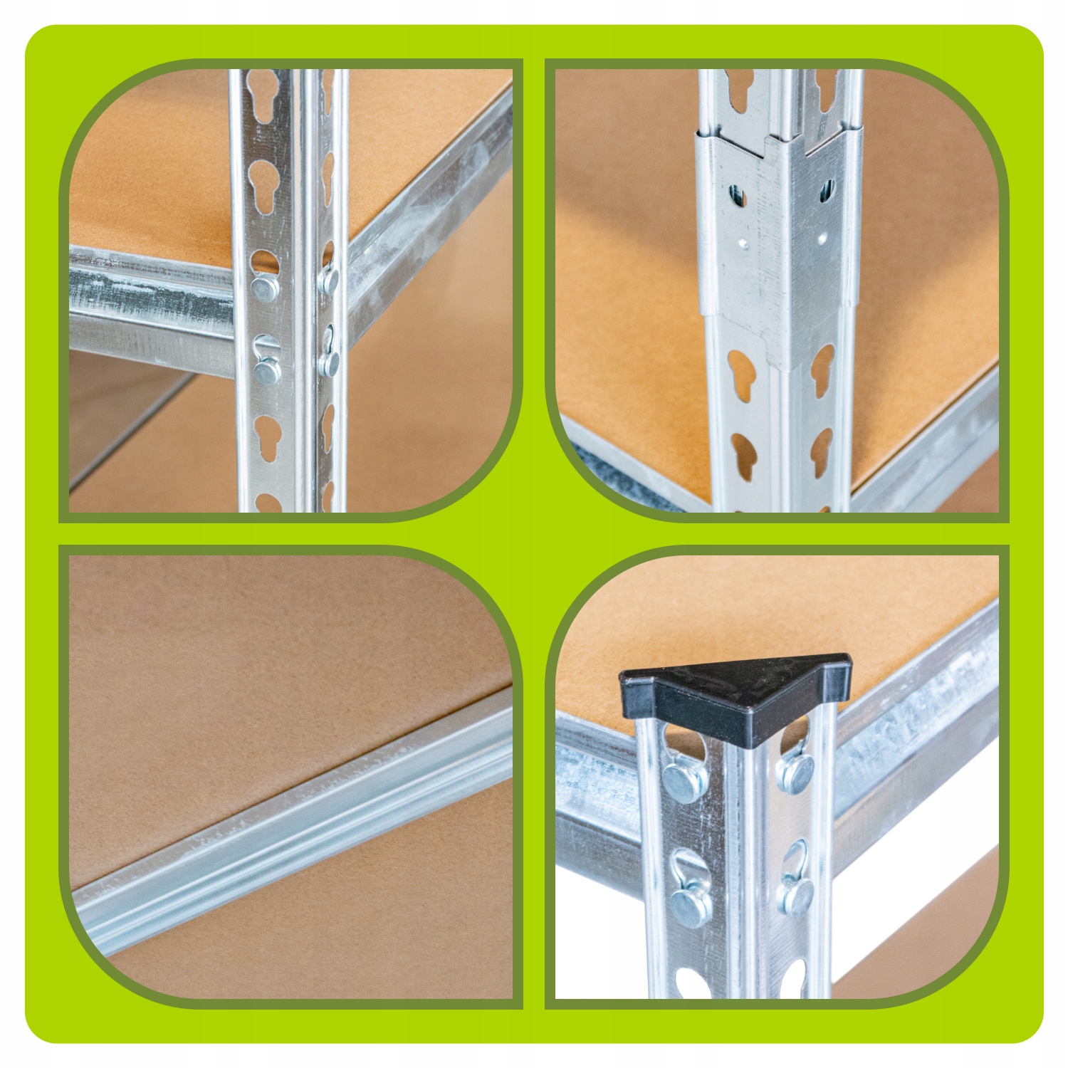 • універсальна полиця добре підійде не тільки в гаражі, але й у підвалі, на складі чи в коморі