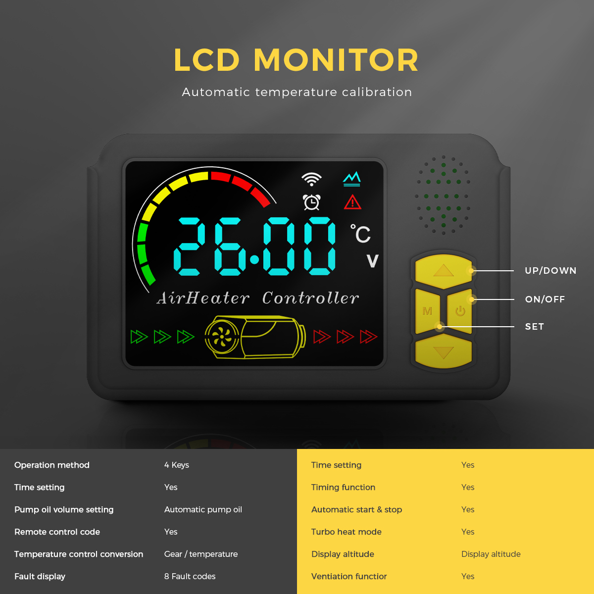 Компактний та легкий, цей дизельний допоміжний обігрівач ідеально підходить для автомобілів, будинків на колесах, вантажівок, човнів, будинків, гаражів, магазинів та наметів . Він швидко нагрівається, простий в експлуатації та забезпечує надійне тепло, що робить його ідеальним вибором як для мобільних, так і для стаціонарних потреб опалення.